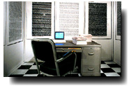 The windows had been walled up several years before after a determined struggle with his landlord. In this way he had gained in every room a fourth wall-space: accommodation for more books [...]. The temptation to watch what went on in the street - an immoral and time-wasting habit - disappeared with the side windows. Daily [...], he blessed both the idea and its results, since he owed to them the fulfillment of his dearest wish: the possession of a well-stocked library, in perfect order and enclosed on all sides.The search for a name continues, allied with the search for a new universal language, and the library has become the locus of this quest and symbol of its inevitable failure. From the myth of the Fall arises a new myth - that of Library Science.