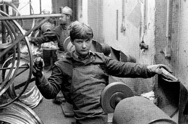 "Felgenschleiferei, Mansfeld Kombinat"/from the series "Rim Grinding Shop at the Mansfield Collective Combine," 1985