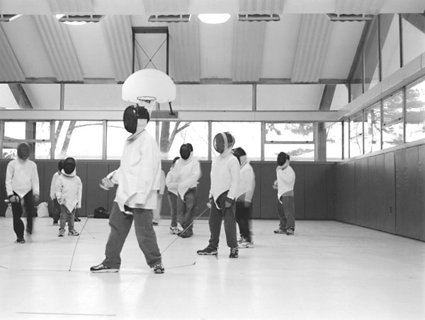 Jen Kodis, Untitled (Intermediate Fencing, Acton, MA), 2003, gelatin silver print, 13 x 19 inches, Courtesy the artist