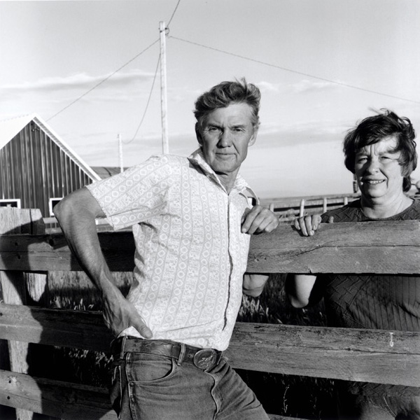 Julie Melton, Mom and Dad, late June sun, 2003, Gelatin silver print, 14 x 14 inches, Courtesy of the artist My parents, Ken and Andrea, live on the wheat farm that my dad grew up on. My mom was raised on a ranch twenty miles down the road, but gave up the canyons for the flatlands. |