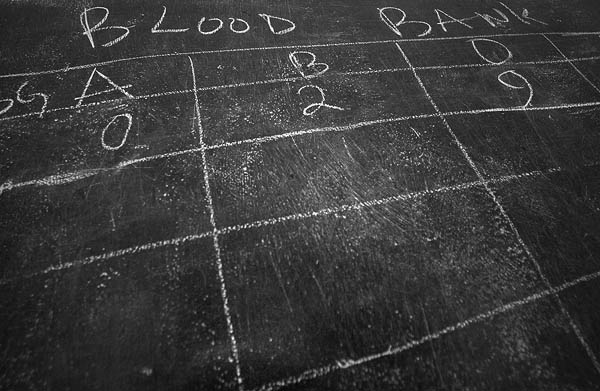 Low numbers on the chalk board equate to low levels of blood for patients needing transfusions due to complications attributed to Malaria.